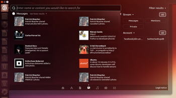 En cuanto a nuestro workflow, este se verá facilitado por las nuevas formas de cambiar entre ventanas, tanto de una misma aplicación como entre aplicaciones. En el primer caso podremos hacerlo simplemente desplazando la rueda del ratón sobre el indicador de la aplicación en el Dash. Para facilitarnos las búsquedas, aunque todavía no se ha terminado el Smart Scopes, sí que se han añadido nuevas lentes. En especial, la lente Friends, que ha sustituido a la anterior de Gwibber.
